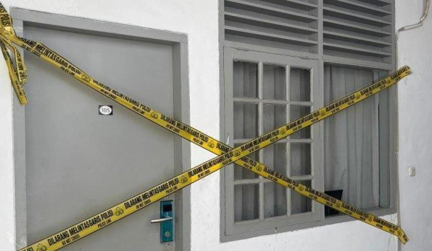 Teks: Diplomat Muda Kemlu Ditemukan Tewas di Kamar Kostnya, Gondangdia Menteng Jakarta Pusat.