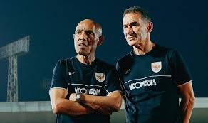 Teks: Pelatih Timnas U23 Indonesia, Gerald Vanenbur bersama asisten pelatih Simon Tahamata